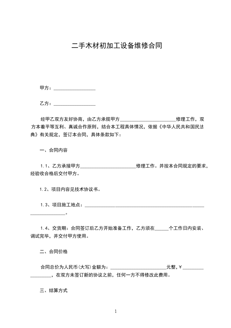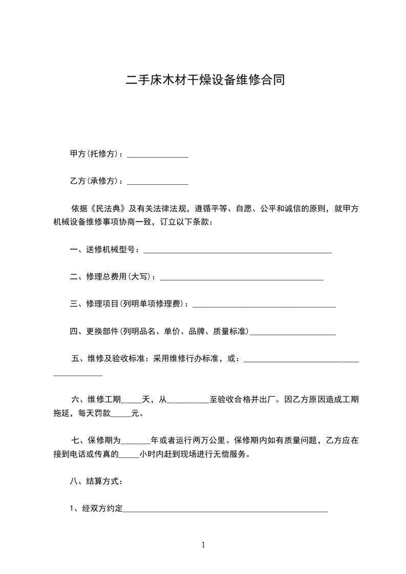 合计(大写)__________________________________元经甲、乙双方协商同意。乙方特委托甲乙维修保养机器。为保证甲乙双方权益,特订立如下协议: