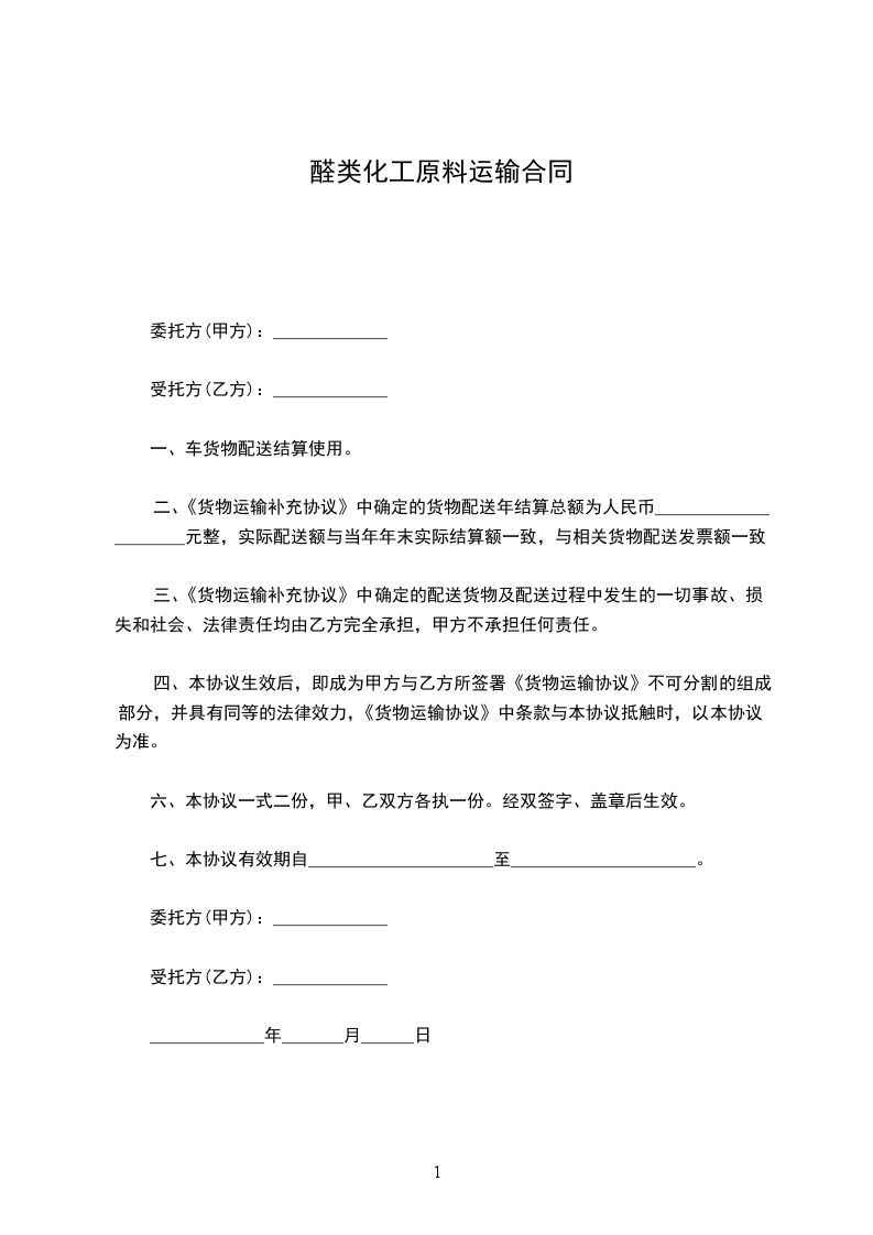 一、甲方委托乙方为__________________至_________________区内的货物特约承运单位。