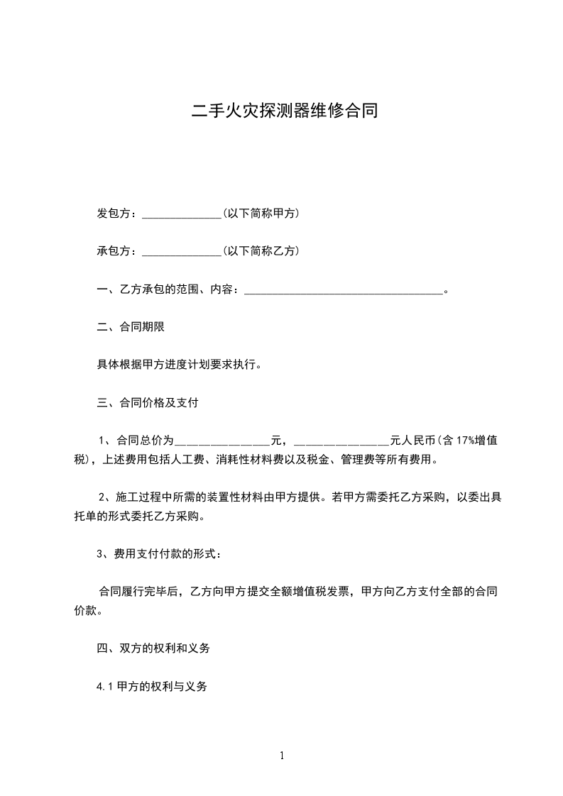 1、为了保障甲方______________设备的正常使用,合同期间内,乙方定期为甲方的_____________________设备进行维修保养,定期______________天保养一次。