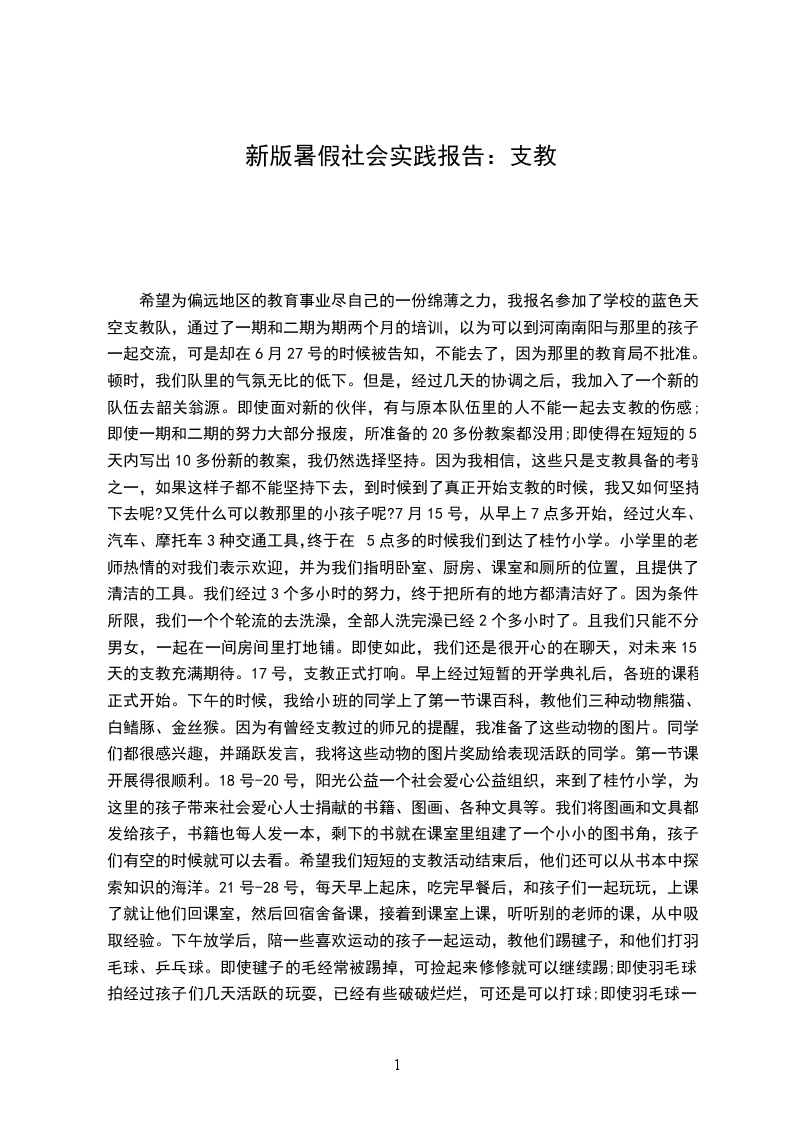 希望为偏远地区的教育事业尽自己的一份绵薄之力,我报名参加了学校的蓝色天空支教队,通过了一期和二期为期两个月的培训,以为可以到河南南阳与那里的孩子一起交流,可是却在6月27号的时候被告知,不能去了,因为那里的教育局不批准。顿时,我们队里的气氛无比的低下。但是,经过几天的协调之后,我加入了一个新的队伍去韶关翁源。即使面对新的伙伴,有与原本队伍里的人不能一起去支教的伤感;即使一期和二期的努力大部分报废,所准备的20多份教案都没用;即使得在短短的5天内写出10多份新的教案,我仍然选择坚持。因为我相信,这些只是支教具备的考验之一,如果这样子都不能坚持下去,到时候到了真正开始支教的时候,我又如何坚持下去呢?又凭什么可以教那里的小孩子呢?7月15号,从早上7点多开始,经过火车、汽车、摩托车3种交通工具,终于在5点多的时候我们到达了桂竹小学。小学里的老师热情的对我们表示欢迎,并为我们指明卧室、厨房、课室和厕所的位置,且提供了清洁的工具。我们经过3个多小时的努力,终于把所有的地方都清洁好了。因为条件所限,我们一个个轮流的去洗澡,全部人洗完澡已经2个多小时了。且我们只能不分男女,一起在一间房间里打地铺。即使如此,我们还是很开心的在聊天,对未来15天的支教充满期待。17号,支教正式打响。早上经过短暂的开学典礼后,各班的课程正式开始。下午的时候,我给小班的同学上了第一节课百科,教他们三种动物熊猫、白鳍豚、金丝猴。因为有曾经支教过的师兄的提醒,我准备了这些动物的图片。同学们都很感兴趣,并踊跃发言,我将这些动物的图片奖励给表现活跃的同学。第一节课开展得很顺利。18号-20号,阳光公益一个社会爱心公益组织,来到了桂竹小学,为这里的孩子带来社会爱心人士捐献的书籍、图画、各种文具等。我们将图画和文具都发给孩子,书籍也每人发一本,剩下的书就在课室里组建了一个小小的图书角,孩子们有空的时候就可以去看。希望我们短短的支教活动结束后,他们还可以从书本中探索知识的海洋。21号-28号,每天早上起床,吃完早餐后,和孩子们一起玩玩,上课了就让他们回课室,然后回宿舍备课,接着到课室上课,听听别的老师的课,从中吸取经验。下午放学后,陪一些喜欢运动的孩子一起运动,教他们踢毽子,和他们打羽毛球、乒乓球。即使毽子的毛经常被踢掉,可捡起来修修就可以继续踢;即使羽毛球拍经过孩子们几天活跃的玩耍,已经有些破破烂烂,可还是可以打球;即使羽毛球一直被打到树上,可用杆子捅捅还是能拿下来;即使乒乓球不够一个六年级的小男生打,被虐得挺惨的,可还是很快乐。和小孩子玩了差不多一个小时,自愿留下来上兴趣班的同学也下课了,捧着他们的作品问我漂不漂亮,一张张天真的笑脸,脸上灿烂的笑容比他们的作品漂亮多了。送他们回家路上,和他们一起聊天,问问他们家里的情况,问问今天的课觉得怎么样,一路上欢声笑语。即使有时候会被孩子的调皮气到,但每天还是快快乐乐的度过,感觉时间不会流逝。29号,兴趣班成果展,自愿每天下午放学后留下来的孩子们,他们每天做好的作品,我们都好好的收好。接着在这天在小班的课室布置好,将他们画的图画贴到墙上,围成一个心形,周围用纸鹤和彩带装饰,手工作品则依次摆放在四周的课桌上,这些手工作品的精致,我自愧不如,可见,孩子们真的花了心思。孩子们来到课室,都很开心的在参观。有的还拉着我的手,问我哪幅画最漂亮。我当时对她说都很漂亮,而我心里则是觉得她的笑容最漂亮。30号,感恩画卷的开展,我们和全部孩子一起,在8米长1米宽的白布上,用彩笔画画。有很多孩子画了花朵、太阳、树,每幅图都洋溢着青春、向上。而我则在他们画的花朵、树上画上一个说话的圈圈,里面写感恩太阳,感恩雨水。孩子们问我为什么这样子写,我说因为太阳和雨水给了他们生命啊,所以他们感恩。孩子们似懂非懂,腼腆的对我笑了笑。31号,文艺汇演,我们队伍给孩子们表演了爱这首歌的手语,孩子们以班为单位,上台表演唱歌、跳舞。最让我感动和意外的是,那个曾经跑出我的课堂,课后我和他聊天的小孩,提出要和另外一个小男生上台表演我教给他们的心愿这首歌。教他们这首歌的时候,其实是一波三折的,第一节课教这个的时候,因为我没有音响,所以电脑播出的声音很小,我让他们不要说话,认真的听,可他们却一直在说老师,声音好小,听不到,然后就在说话了。我很生气,就发脾气说你们安静下来就能听到了。可他们还是老样子。最后,我气哭了,就搬着电脑走出了教室。幸好有另外一个队员帮我善后。过后,我反思,自己不应该那么冲动的,队员也对我说孩子还小,好动些、喜欢说话也是正常,我们要耐心的教育他们。还有一点让我感动的是,就是有队员去找他们谈话,问他们知道为什么老师会拿着电脑走出教室,他们回答说因为我们在课堂上吵,让老师生气了,我们下节课会认真上课的。接着我教了他们3节课唱心愿这首歌,他们也认真的学了三节课。他们的认真、努力、勇气,都让我有种想哭的冲动,感觉自己真的教给他们一些东西。而他们教给我的东西,则更多。结束语:支教的这短短的15天,我们只是过客,我很感谢孩子的认真,勇气,还有笑容。虽然我是为了教给孩子们一些东西而去的支教,可是,他们教给我的东西更多。