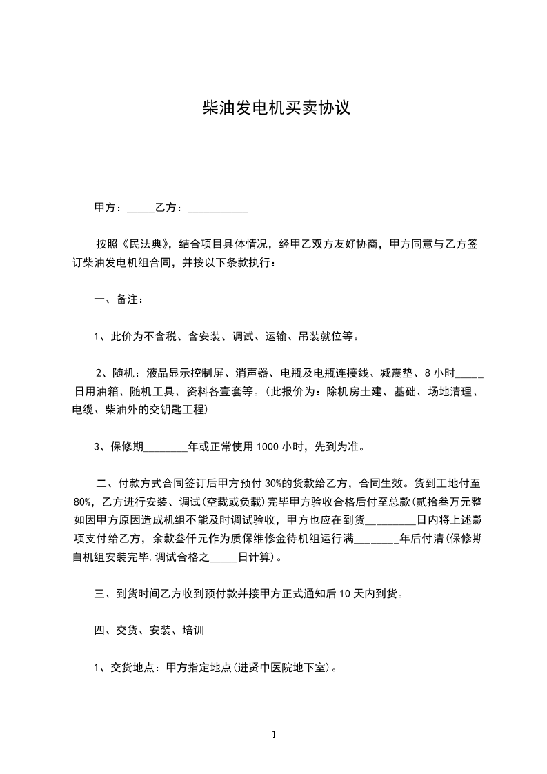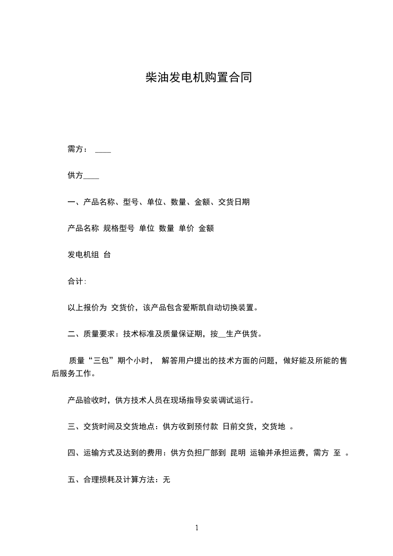 柴油发电机定做合同