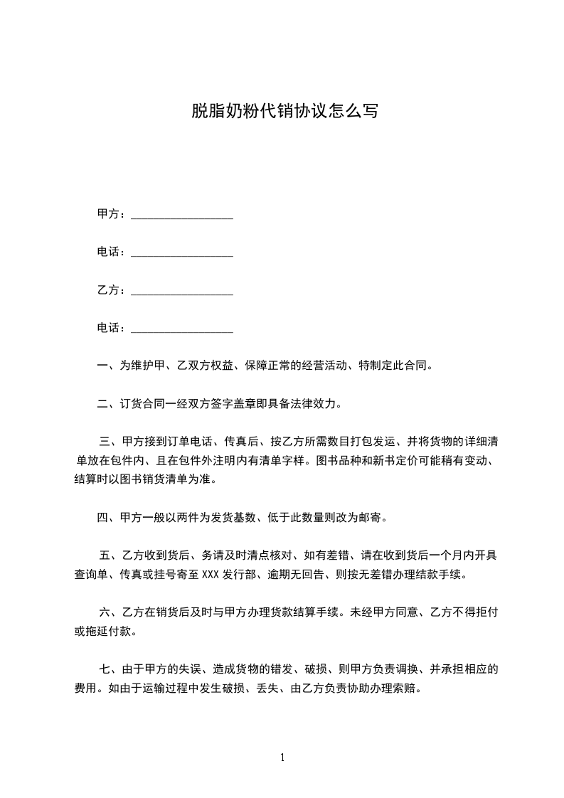 脱脂奶粉采购合同