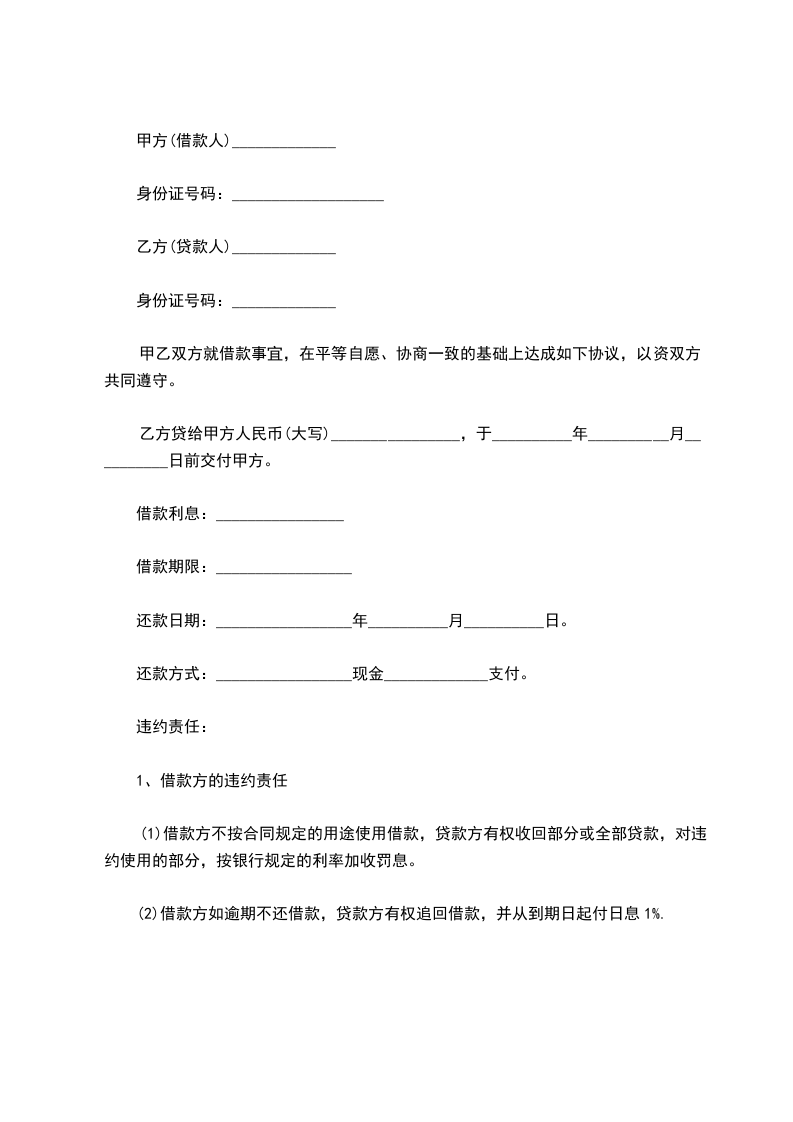 乙方贷给甲方人民币(大写)________________,于__________年__________月__________日前交付甲方。