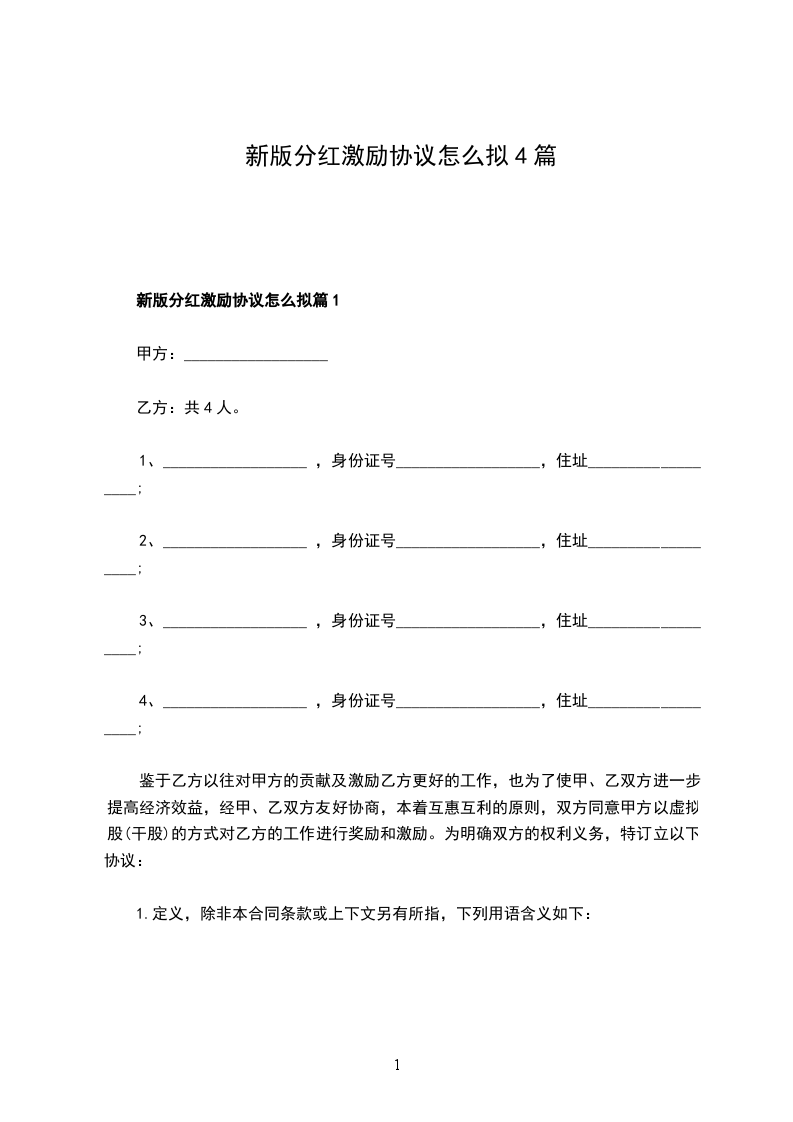 正规分红激励协议怎么拟篇2