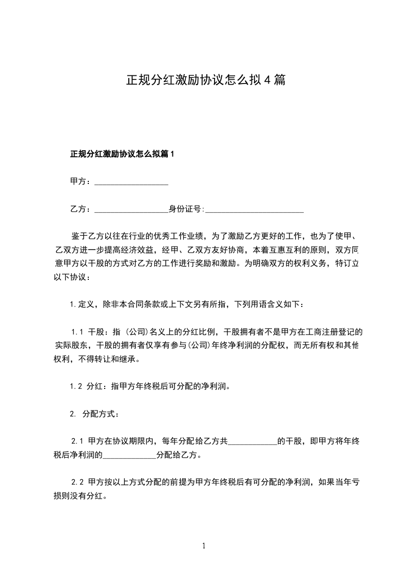 正规分红激励协议怎么拟篇1