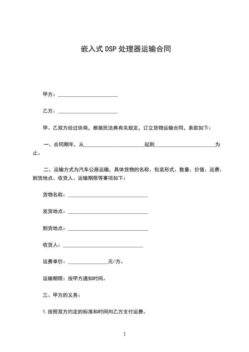 6、货物到达目的地后,乙方应提供不低于______________平方米的仓库卸放货物。