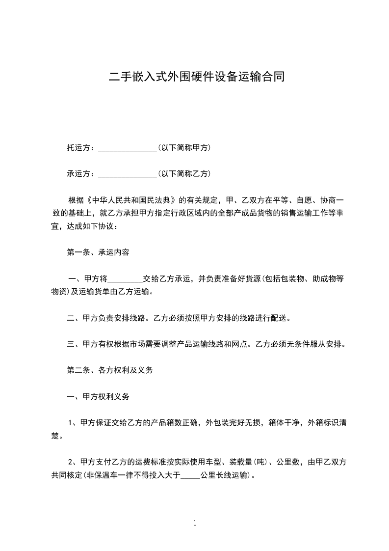 依据相关法律法规,甲乙双方本着自愿、平等、公平之原则,经充分协商,就乙方委托甲方运货事宜达成如下协议: