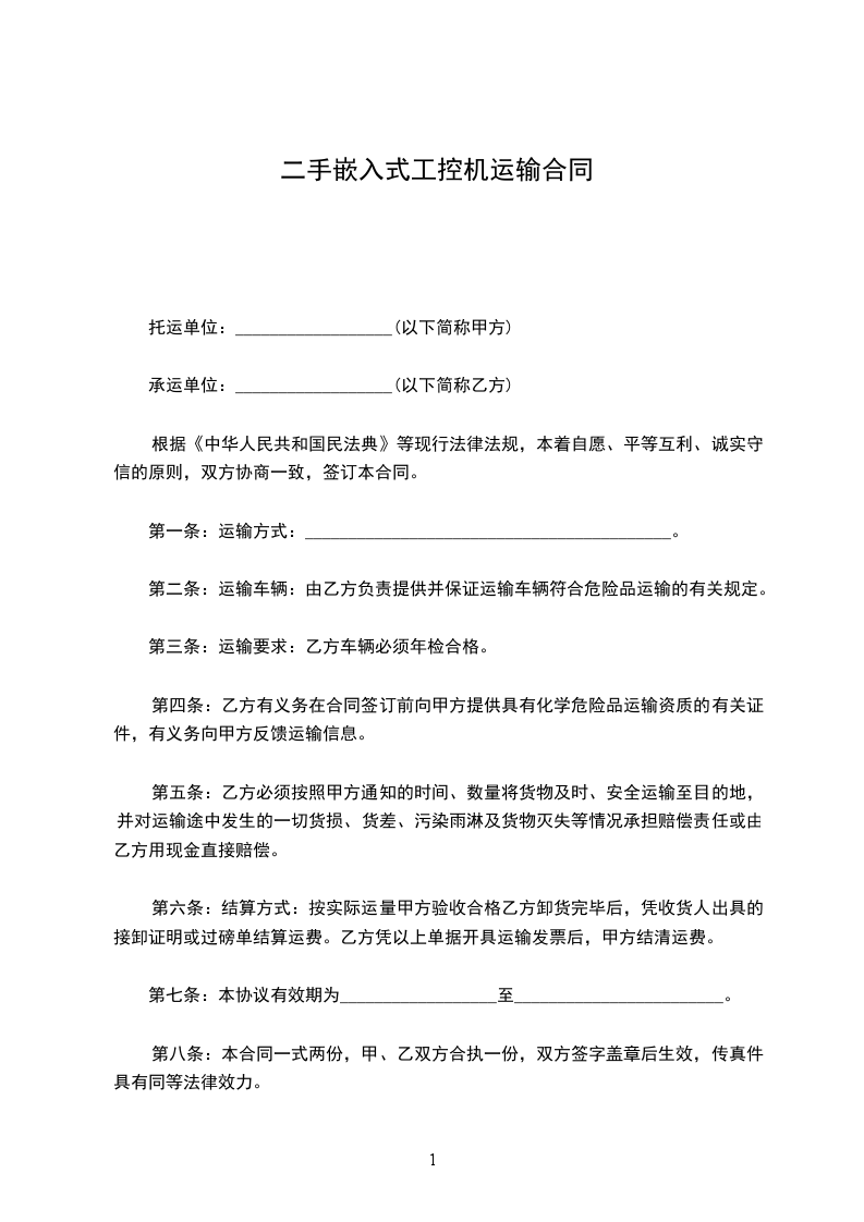 1、须提前_______个小时将货运计划通知乙方,并如实告知乙方货物的名称、数量、装货时间、地点等有关资料。