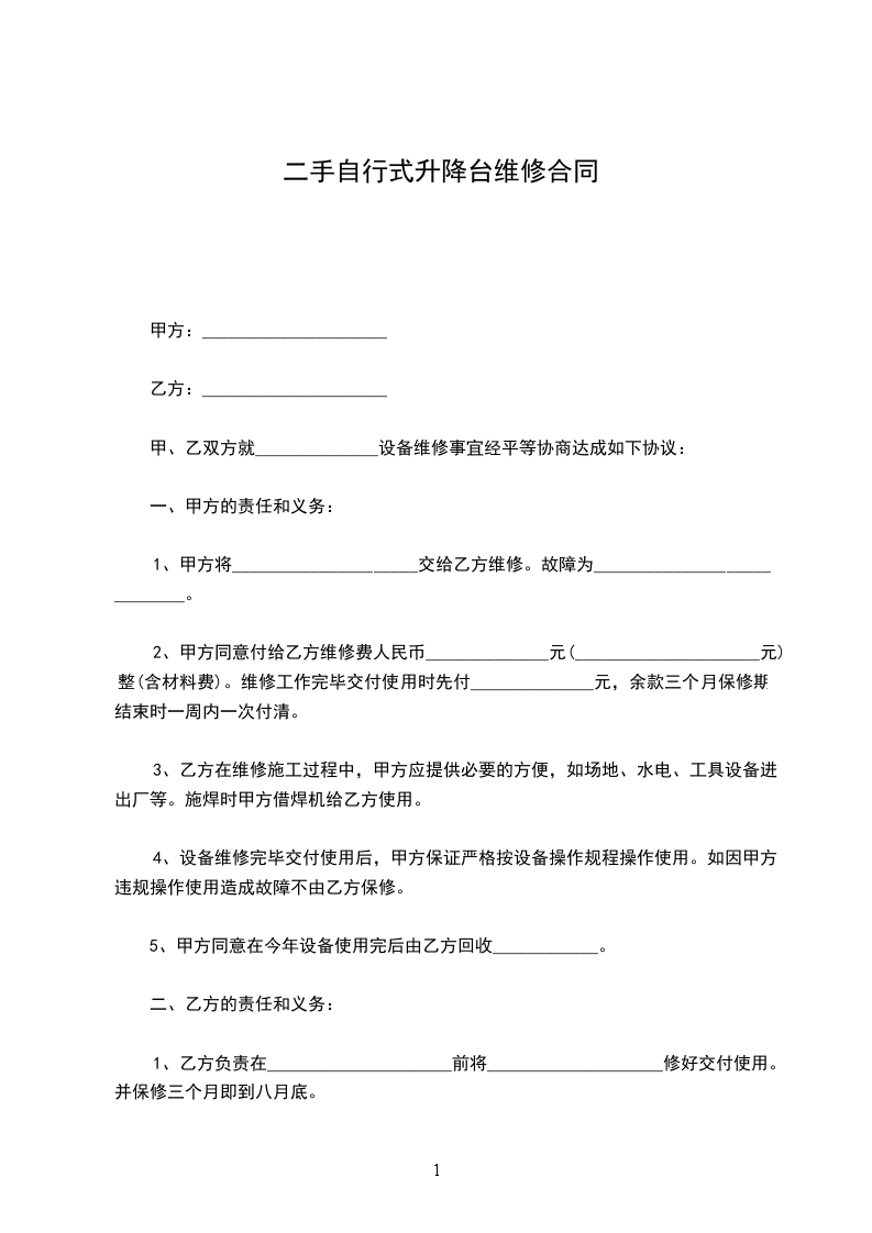 1、甲方将_____________________交给乙方维修。故障为____________________________。