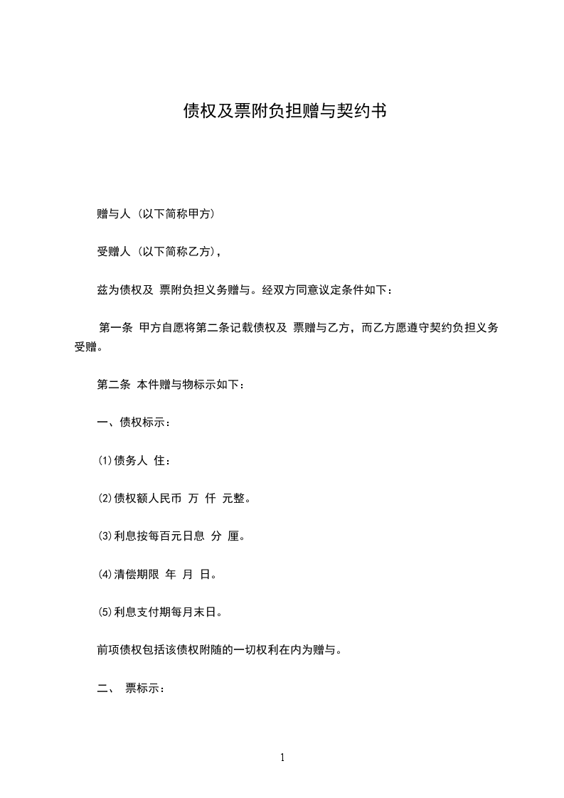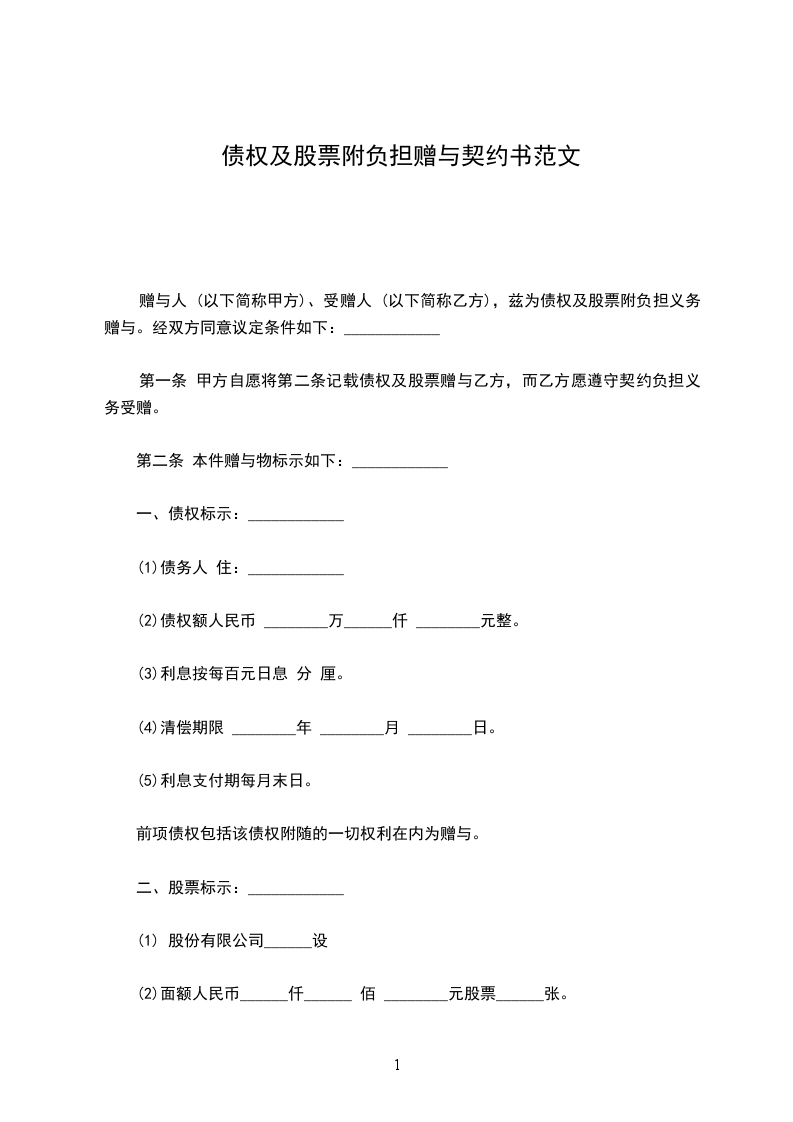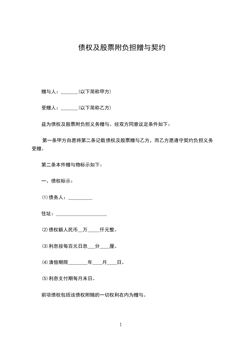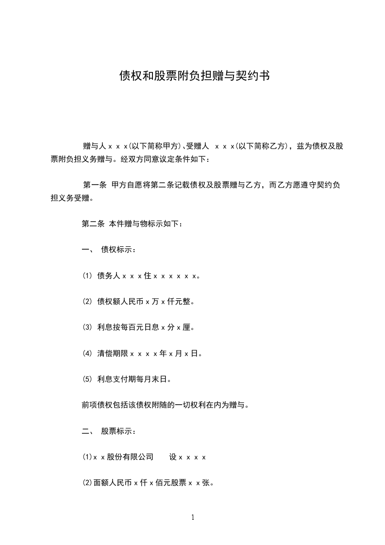 兹为债权及股票附负担义务赠与。经双方同意议定条件如下: