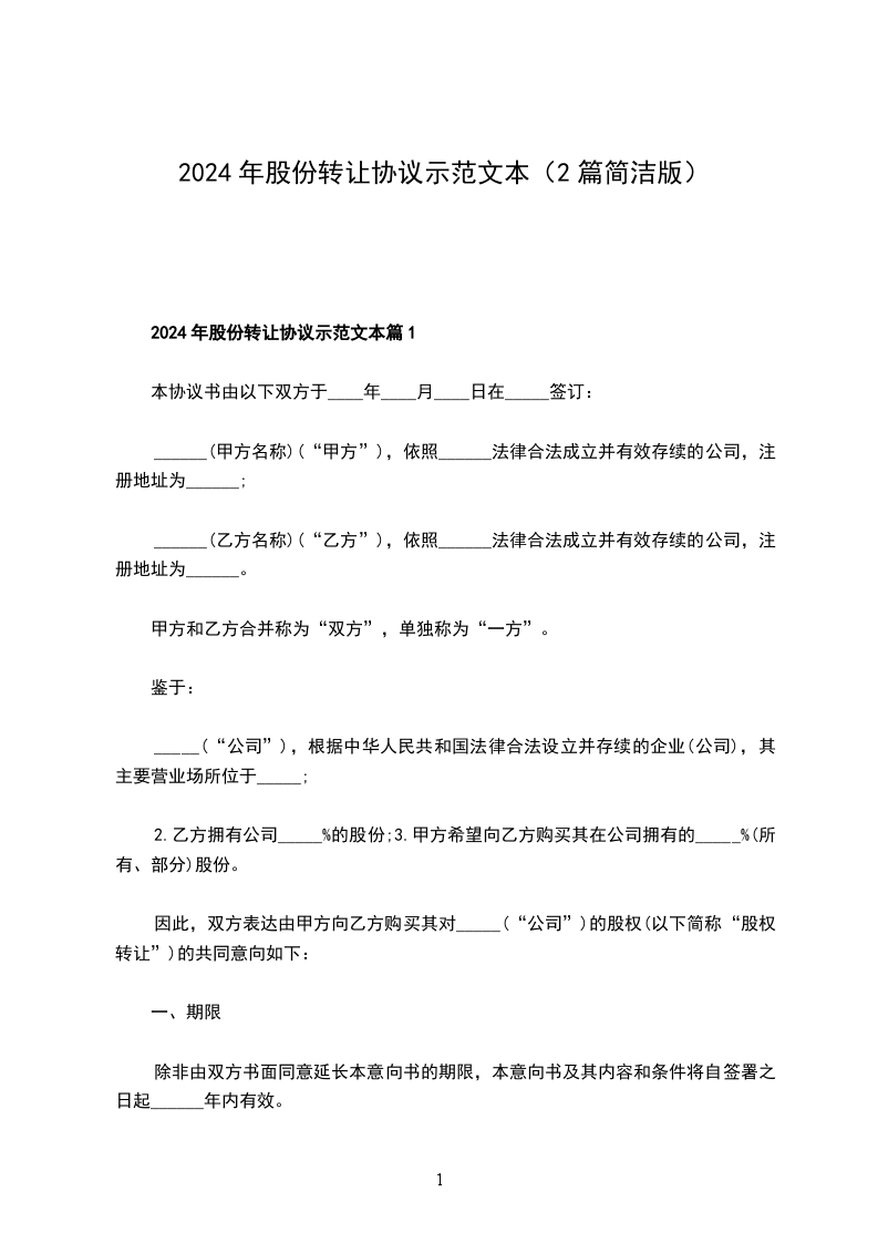 2.乙方拥有公司_____%的股份;3.甲方希望向乙方购买其在公司拥有的_____%(所有、部分)股份。