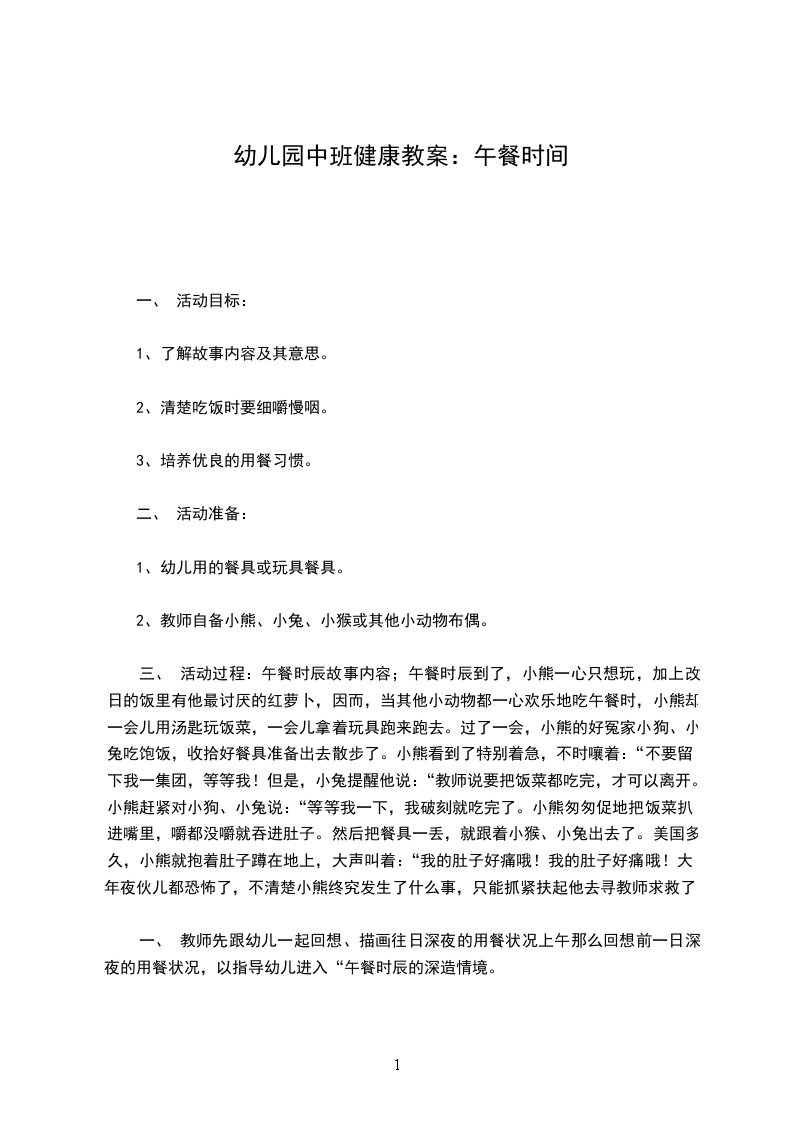 一、 教师先跟幼儿一起回想、描画往日深夜的用餐状况上午那么回想前一日深夜的用餐状况,以指导幼儿进入“午餐时辰的深造情境。