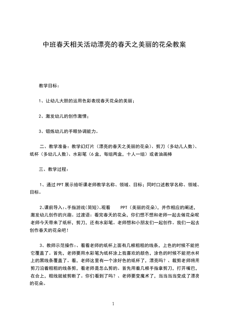 1、通过谈话激发兴趣活动开始我利用谈话形式引导幼儿将自己已有的关于春天里的各色各样花的经验进行整理,激发幼儿活动兴趣。