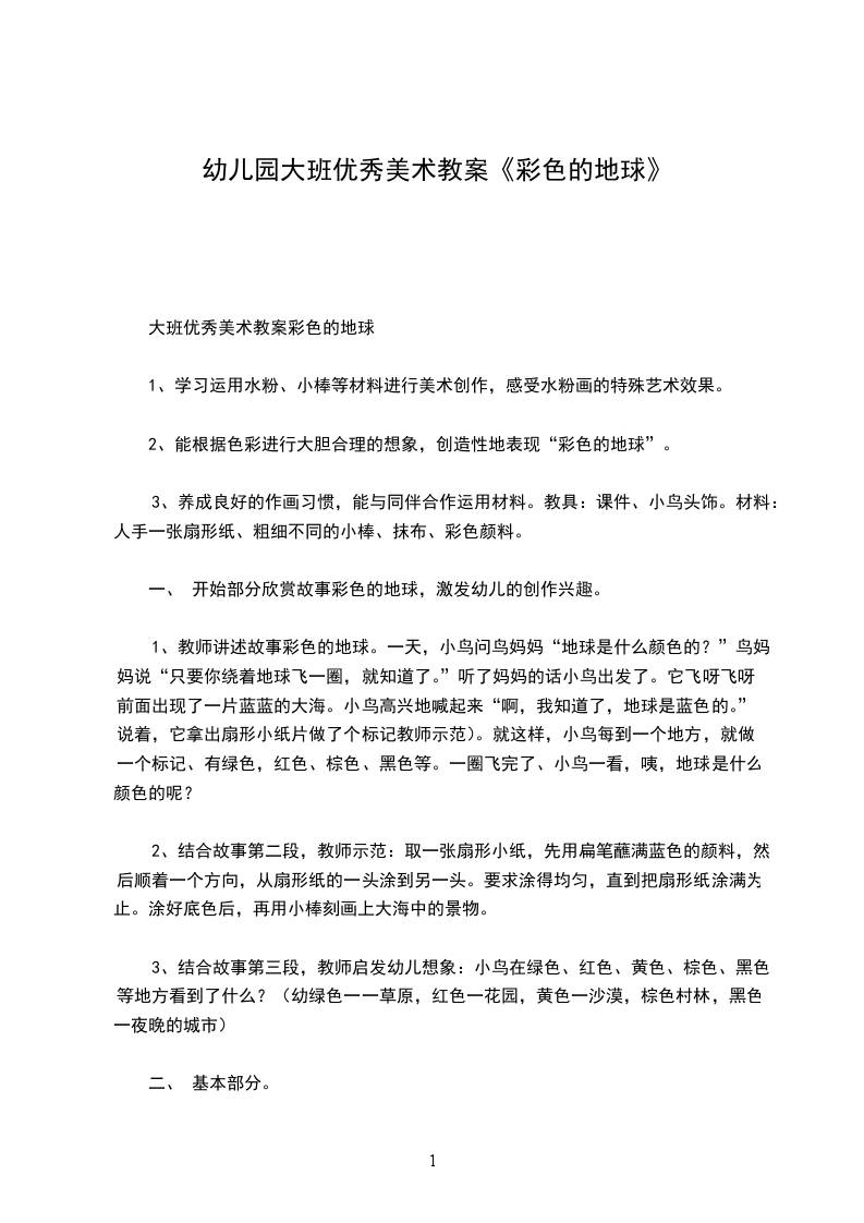 大班优秀美术教案彩色的地球