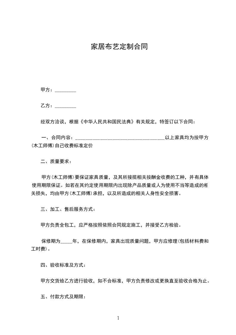 一、合同内容:____________________________________以上家具均为按甲方(木工师傅)自己收费标准定价