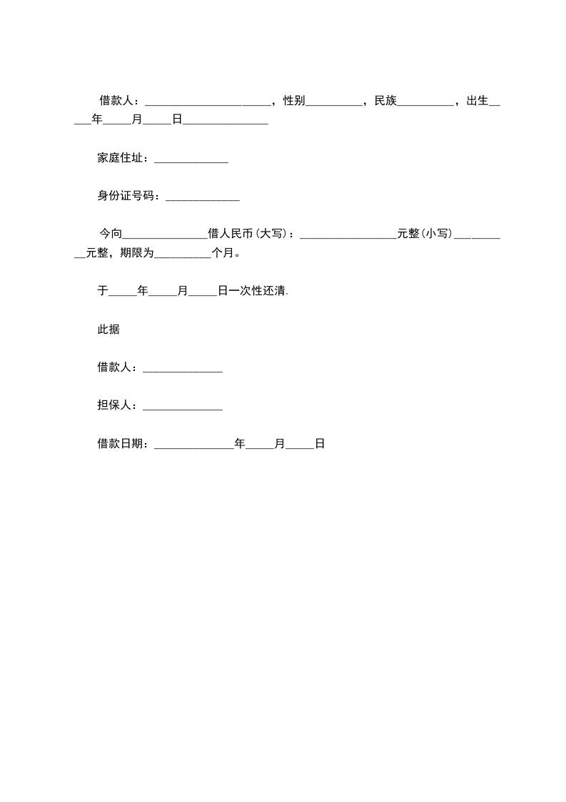 借款人:______________________,性别__________,民族__________,出生_____年_____月_____日_______________