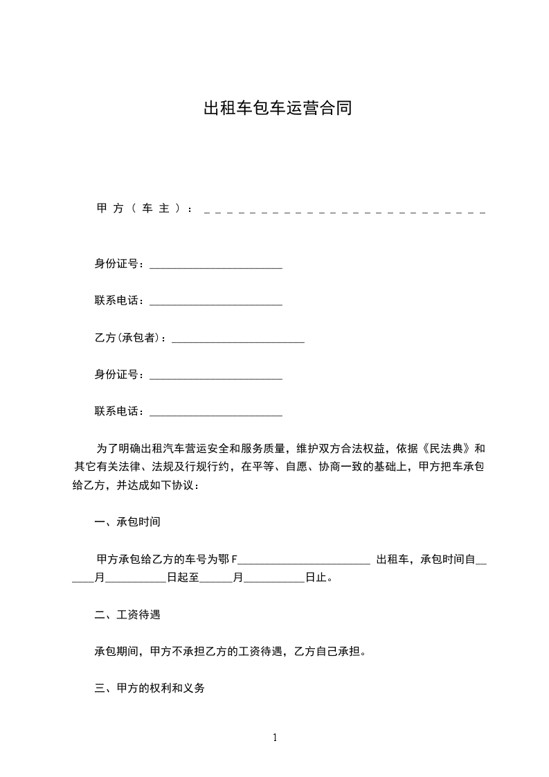 四、租用期定为____,自20__年__月__日起至20__年__月__日止,承租方如果继续使用或停用应在____日前向出租方提出协商,否则按合同规定照收租费或按合同期限将车收回。