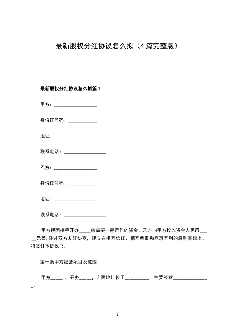 新版分红权协议怎么拟篇1