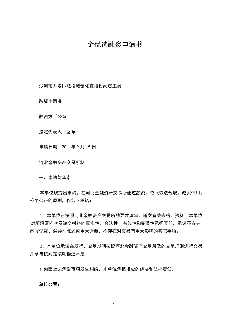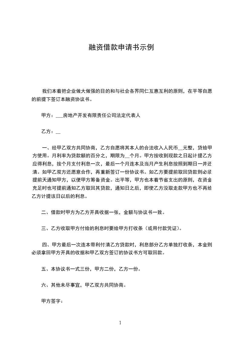项目贷款融资申请书