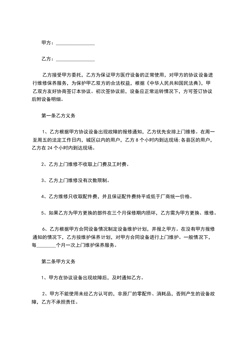 二、保修期限内,乙方主动每个月为甲方机器上门保养一次,每个月检修一次。