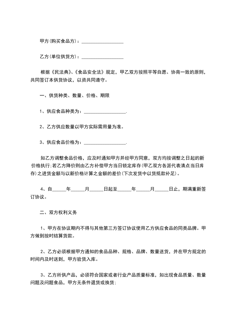 经双方洽谈,乙方成为甲方__________________原材料供应商。为了明确甲、乙双方的权利和义务,经双方友好协商,签订本合同。