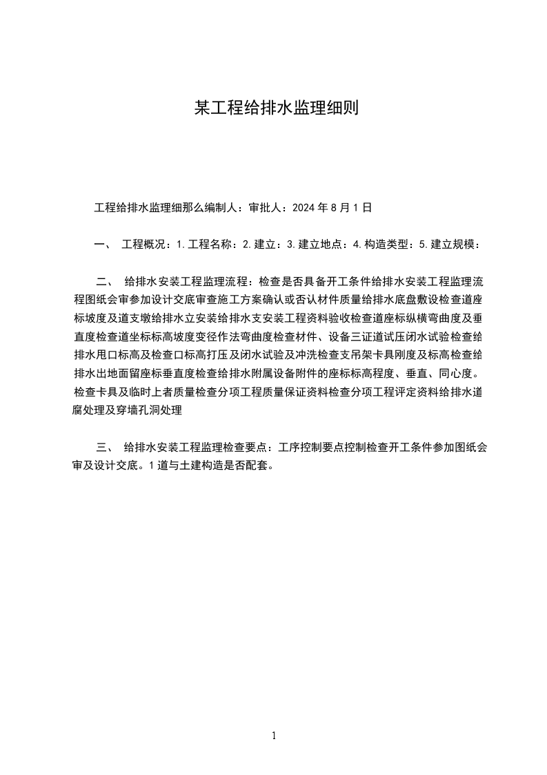 工程给排水监理细那么编制人:审批人:2024年8月1日