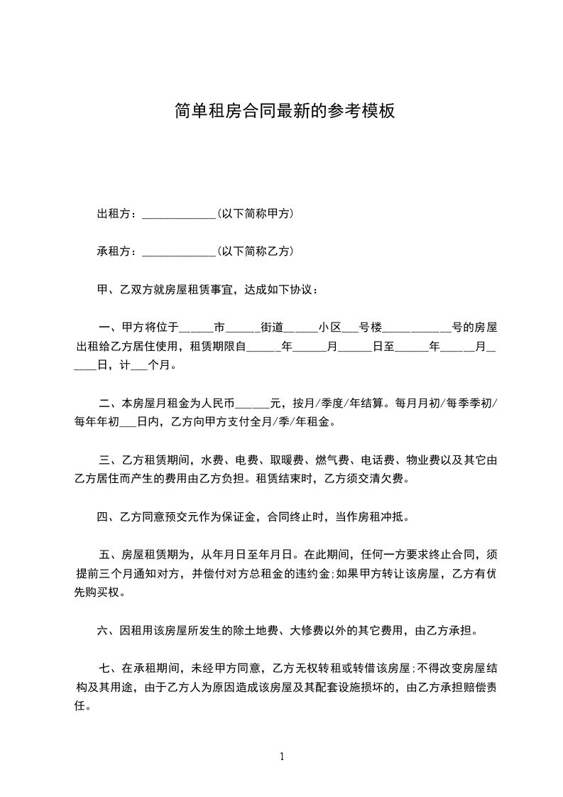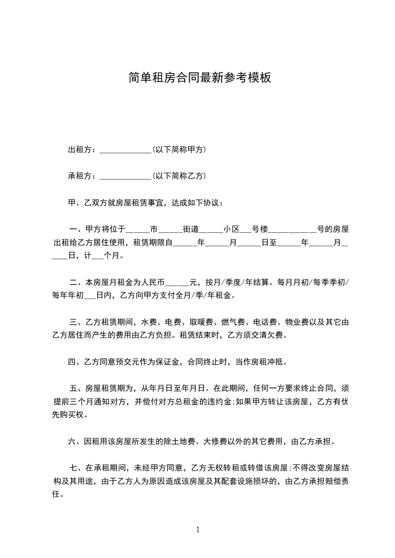 一甲方将其所在位于_______________路__________弄__________号__________室的房屋出租给乙方使用。