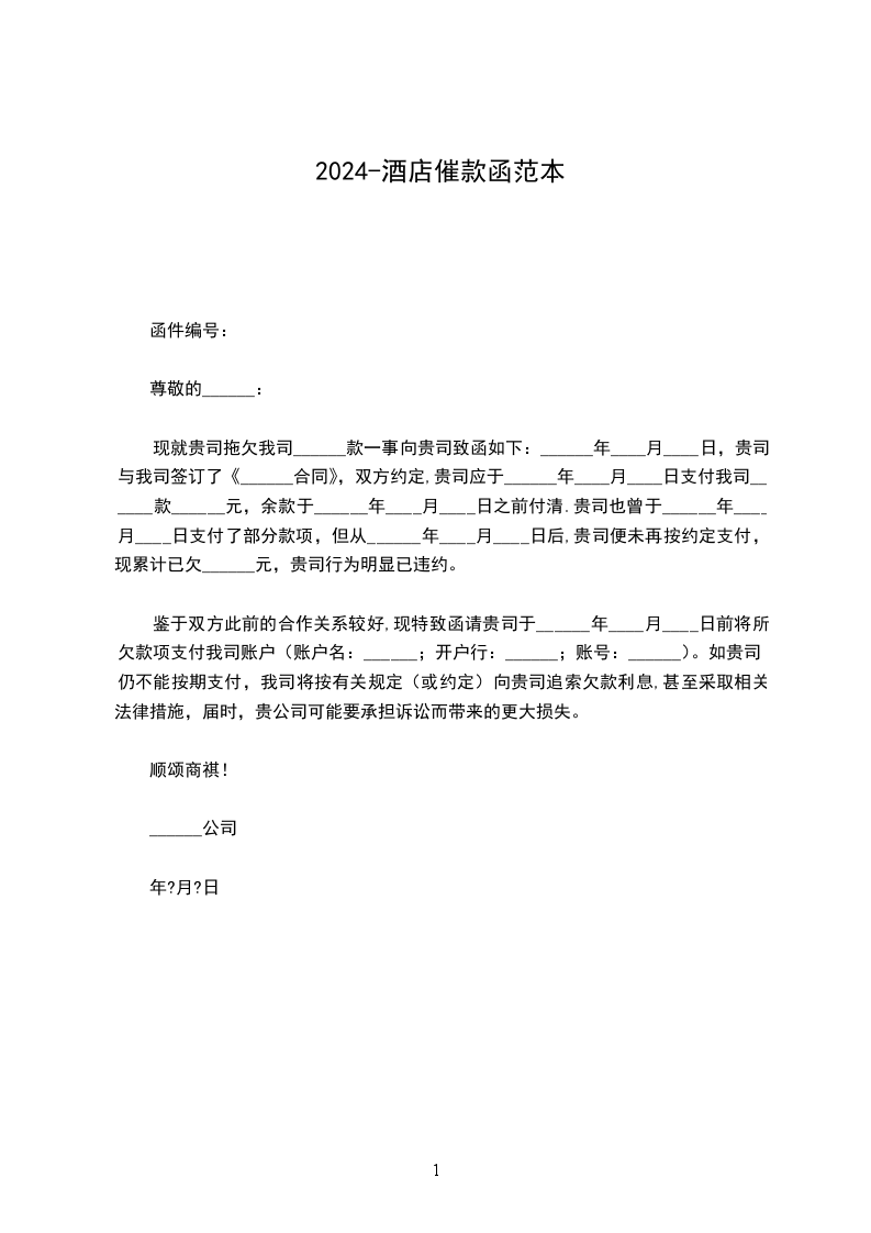 鉴于双方此前的合作关系较好,现特致函请贵司于______年____月____日前将所欠款项支付我司账户(账户名:______;开户行:______;账号:______)。如贵司仍不能按期支付,我司将按有关规定(或约定)向贵司追索欠款利息,甚至采取相关法律措施,届时,贵公司可能要承担诉讼而带来的更大损失。