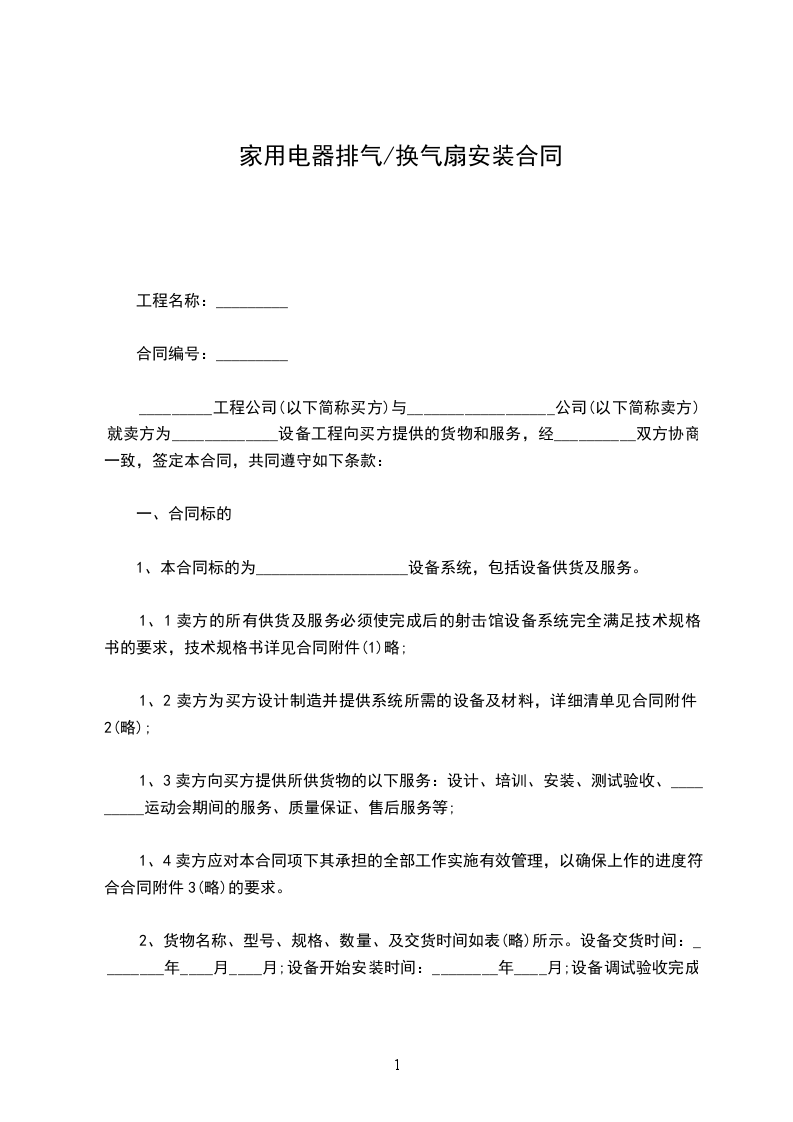 1、本合同标的为___________________设备系统,包括设备供货及服务。