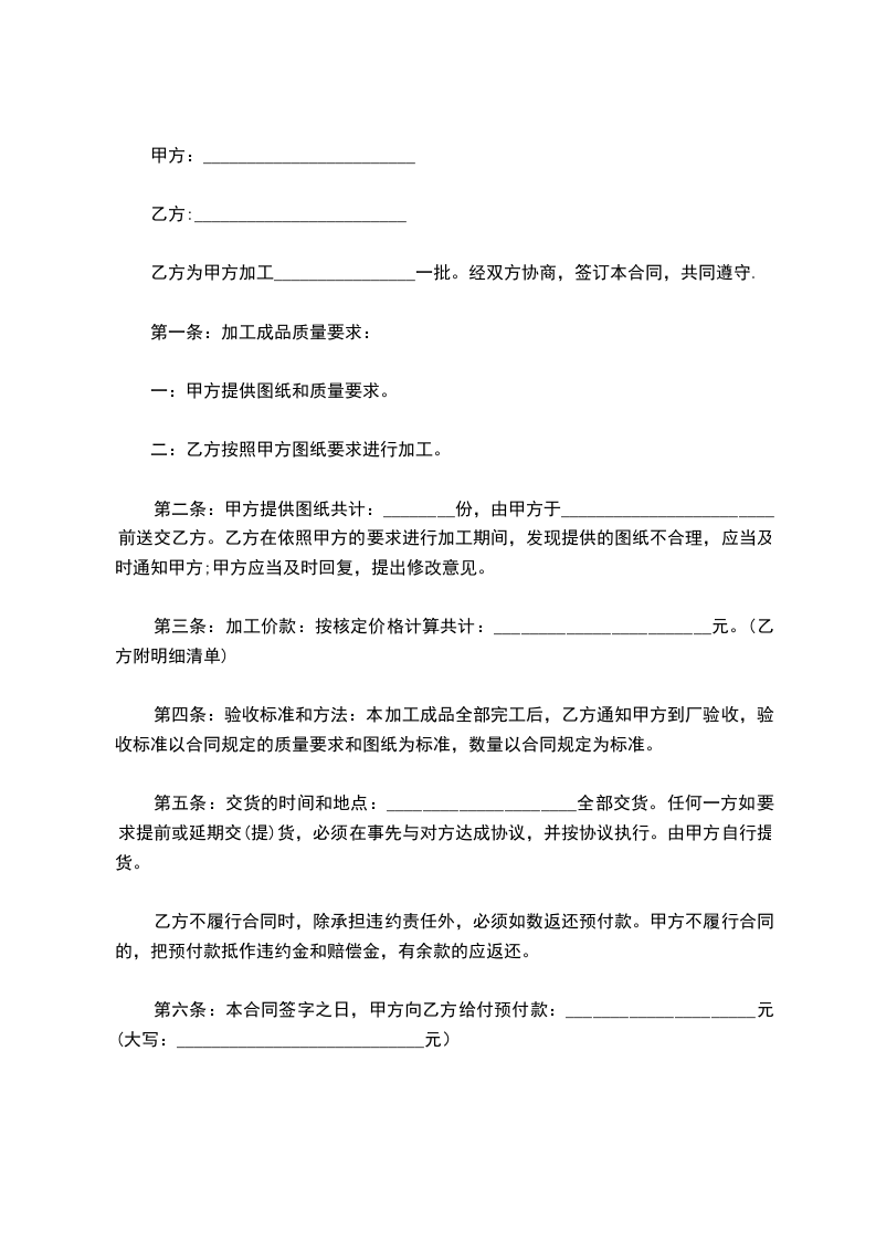 乙方为甲方加工________________一批。经双方协商,签订本合同,共同遵守.