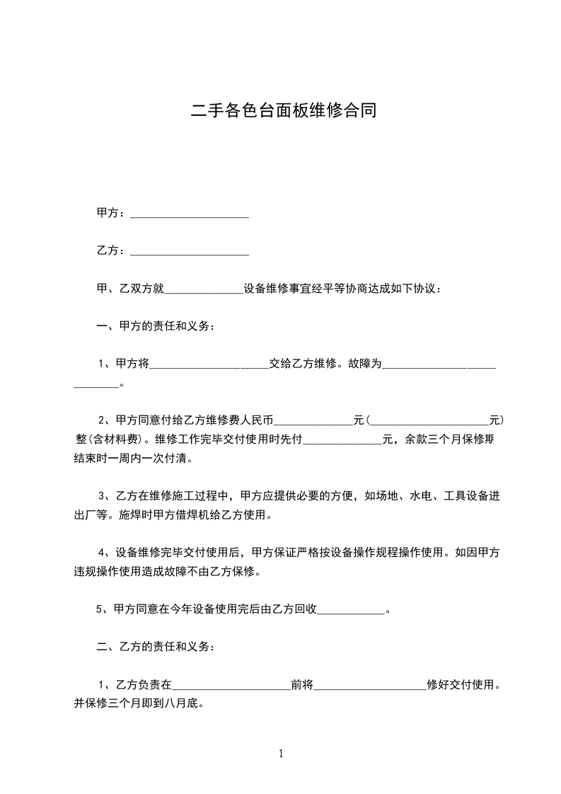 1、甲方将_____________________交给乙方维修。故障为____________________________。