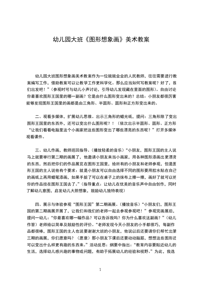 四、 展示作品,交流。边相互欣与交流自己的手形画。教学反思:作为教师要善于发现幼儿的不同特点,给予每一位幼儿以激励性的评价,充分挖掘作品中成功的东西,给予积极的肯定,使他们获得成功的体验,感受到手工活动的乐趣,从而增强自信心。小百科:想象画,是利用视觉形象等来展现想象的绘画。美术创作课内容之一。启发和指导学生将过去生活中所记忆和积累的各种素材,经过有目的的加工改造,创造出具有典型意义和审美情趣的艺术形象。可反映现实或进行虚构;可采用写实的手法或理想的、象征的、变形的、拟人化的表现手法。由此可使学生打破时间、空间的局限,充分展开想象的翅膀,描绘自己心中的理想世界,发展学生创造性思维。