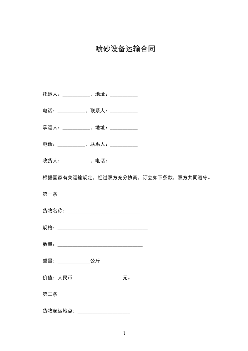 二手喷砂设备运输合同