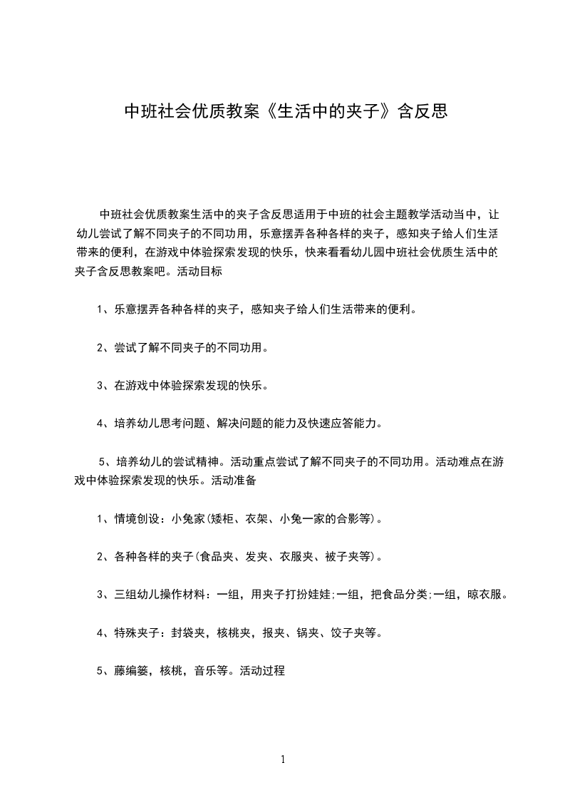 中班社会优质教案生活中的夹子含反思适用于中班的社会主题教学活动当中,让幼儿尝试了解不同夹子的不同功用,乐意摆弄各种各样的夹子,感知夹子给人们生活带来的便利,在游戏中体验探索发现的快乐,快来看看幼儿园中班社会优质生活中的夹子含反思教案吧。活动目标