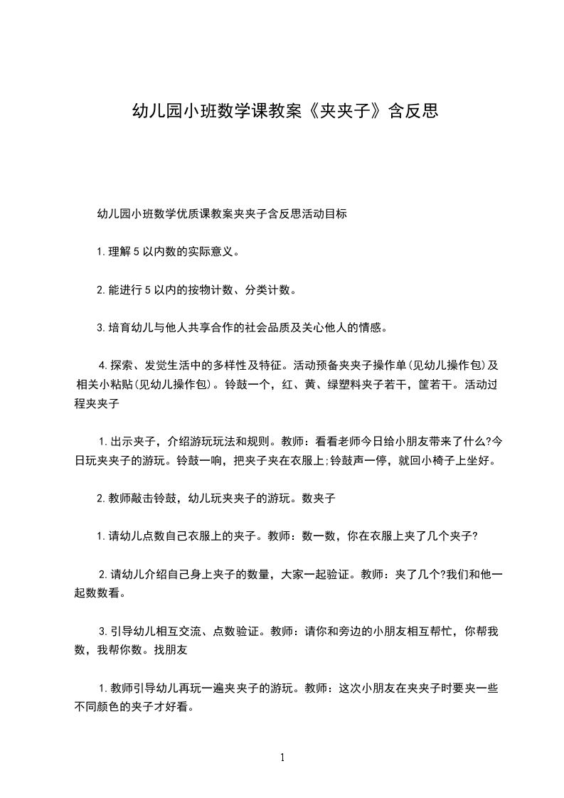 5、延伸活动:回到家里、到超市去寻找各种各样奇妙的夹子吧。教学反思:教学过程中,幼儿积极配合,认真尝试,在自主练习里获取了经验,又在集体练习里感受到了快乐和喜悦,达到寓教于乐的目的,教学目标也得到了圆满的完成。小百科:夹子,英文名:Aclip,人们用来夹东西的一种器具,很常见。夹子的种类很多,用途颇广,形状也各不相同。夹子的类型有镂空夹子、发夹、文件夹、衣服夹等。