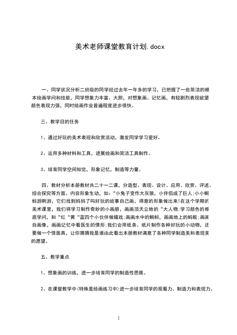 一、同学状况分析二班级的同学经过去年一年多的学习,已把握了一些简洁的根本绘画学问和技能,同学想象力丰富、大胆,对想象画、记忆画,有较剧烈表现欲望,颜色表现力强,同时绘画作业普遍程度进步很快。