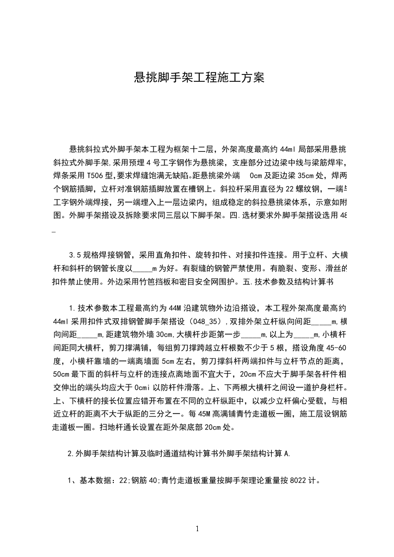(4)立杆必须安放在木枕上,扫地杆必须与槽钢连接成整体,立杆接长上部架采用搭接,搭接长度不小于1m,不少于两个扣件固定。中下部架均采用对接扣件连接,对接要求按JGJ130如有侵权请联系网站删除楫品好资料如有侵权请联系网站删除