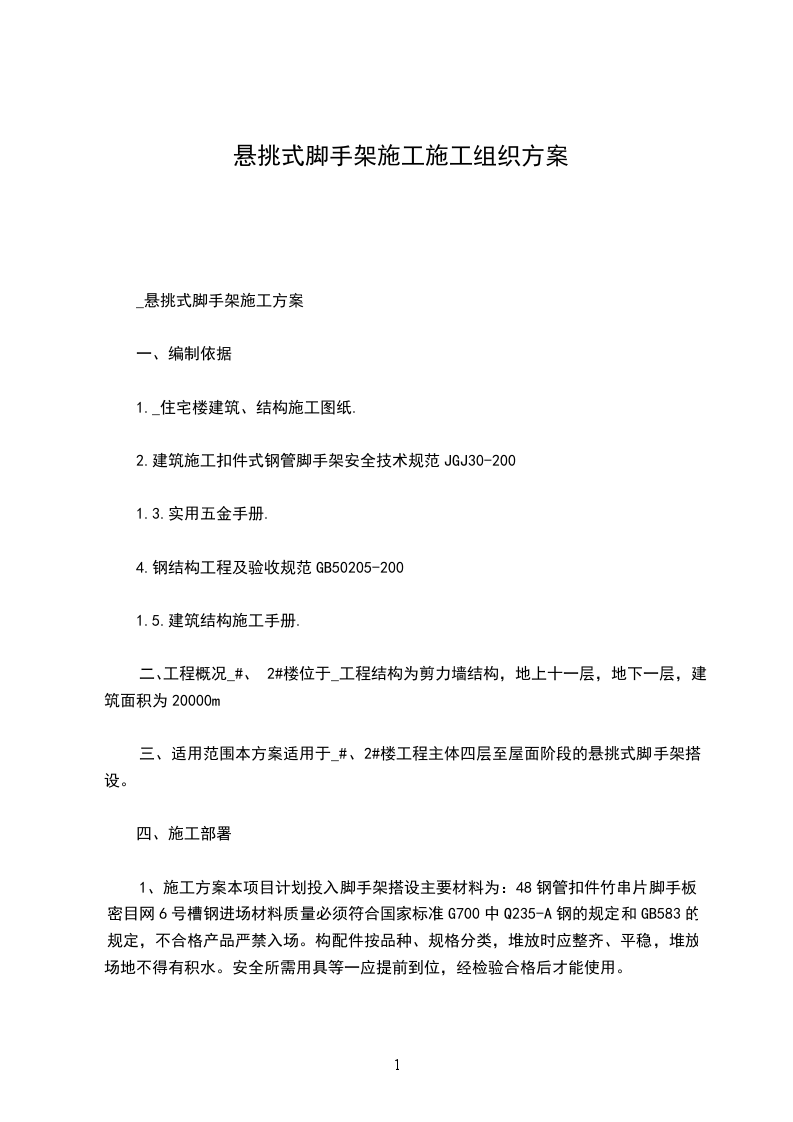(3)材料的选择及要求:架料采用48_3.5钢管,其力学性能符合现行国标碳素结构钢GB70085规定,各活动部位灵活,无裂纹、气孔、毛刺等。