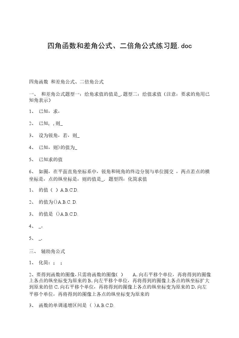 一、 和差角公式题型一:给角求值的值是_.题型二:给值求值(注意:要求的角用已知角表示)