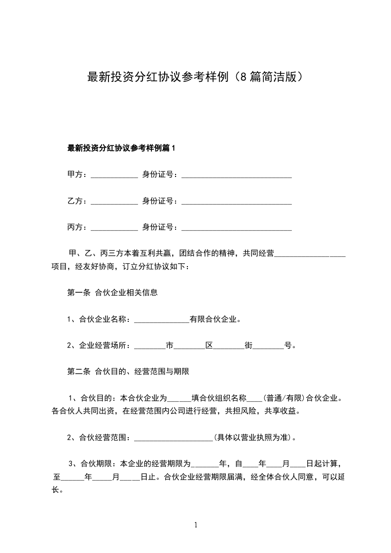 (1)本协议仅对合伙期间分红有效,合伙终止时不再有效。