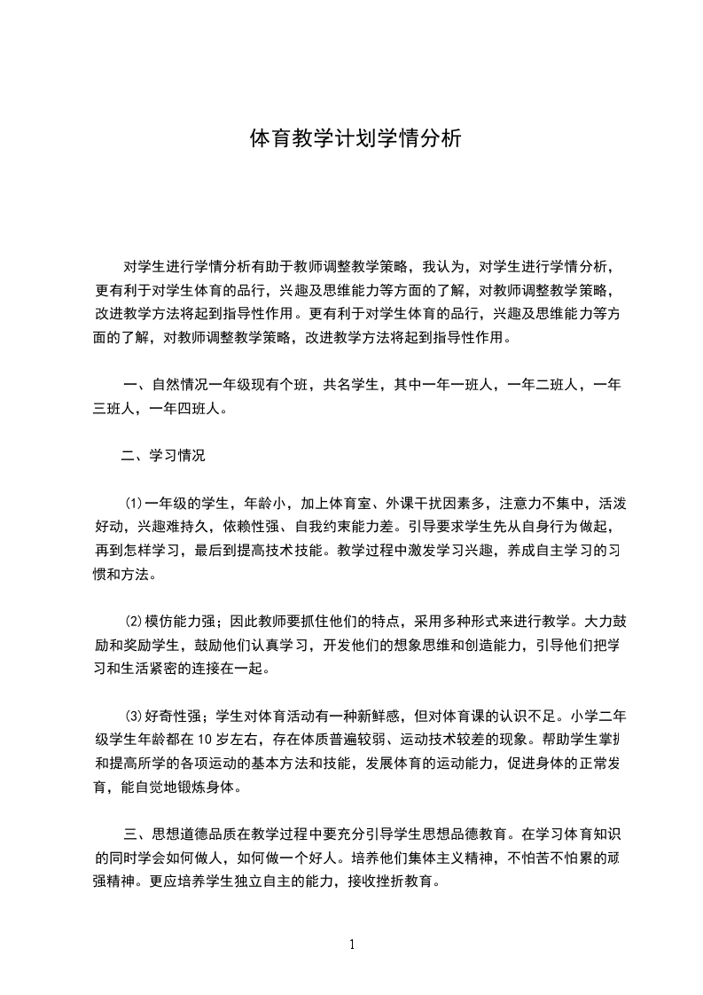 一、自然情况一年级现有个班,共名学生,其中一年一班人,一年二班人,一年三班人,一年四班人。