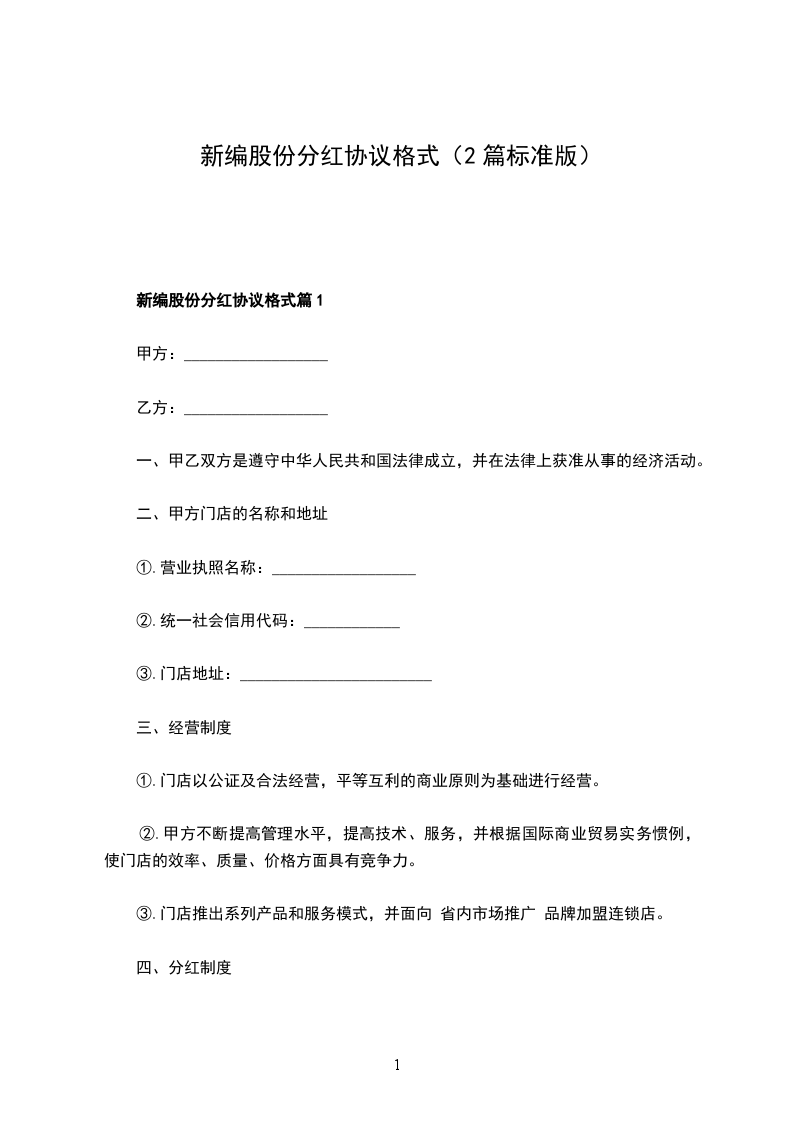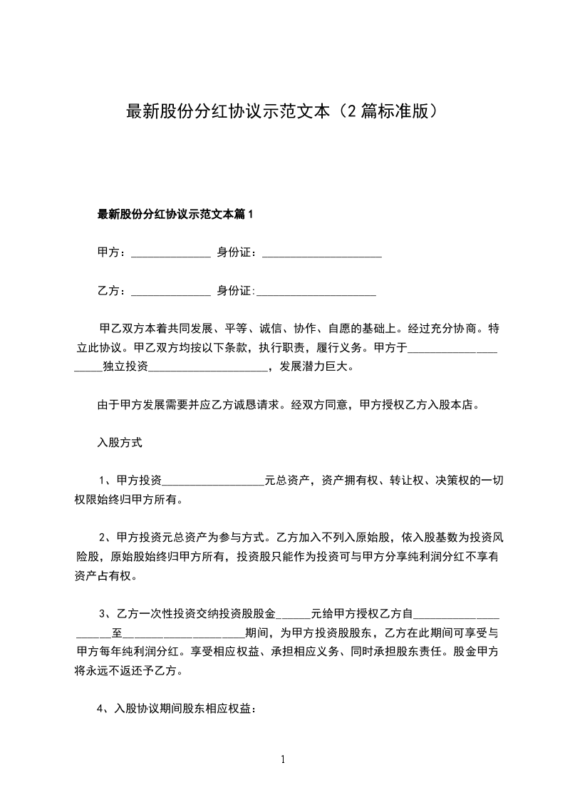 2024年股份分红协议参考样式篇1