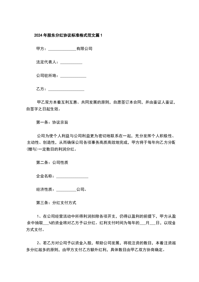 股东分红协议标准格式范文篇12