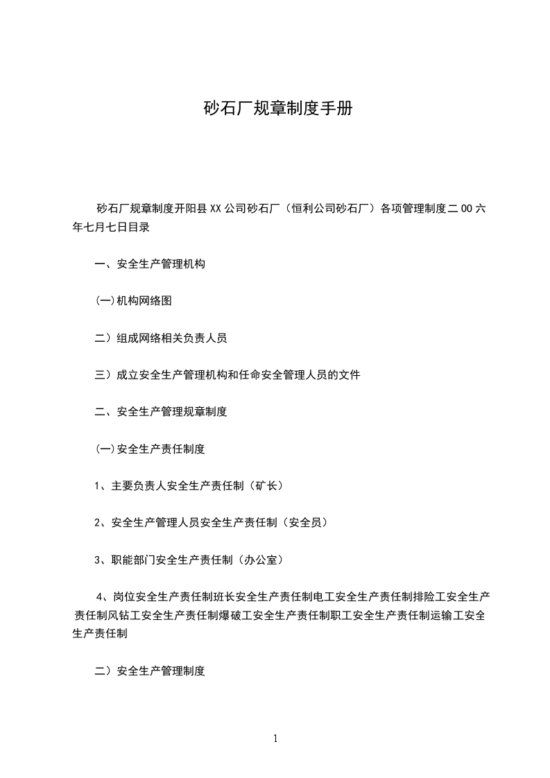 砂石厂规章制度开阳县XX公司砂石厂(恒利公司砂石厂)各项管理制度二OO六年七月七日目录