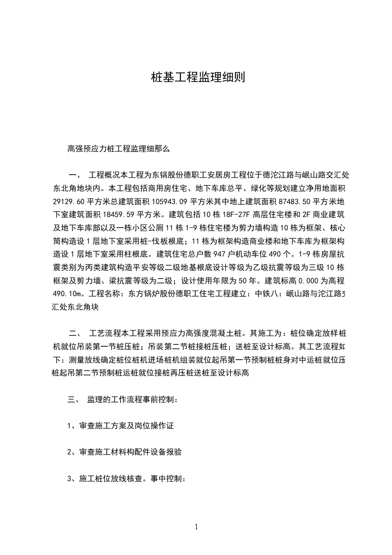 1、压桩施工前应对邻近施工范围的原有建筑物地下线等进展检查对有影响的工程应采取有效的加固措施以确保施工平安。