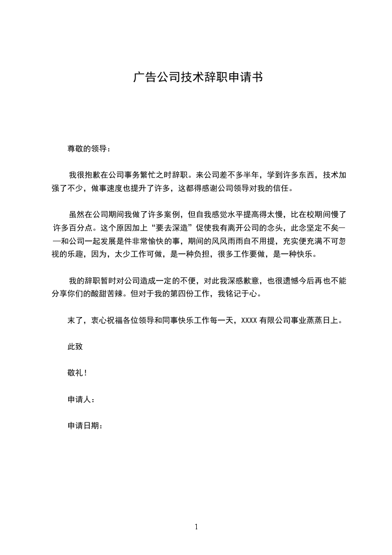 我的辞职暂时对公司造成一定的不便,对此我深感歉意,也很遗憾今后再也不能分享你们的酸甜苦辣。但对于我的第四份工作,我铭记于心。