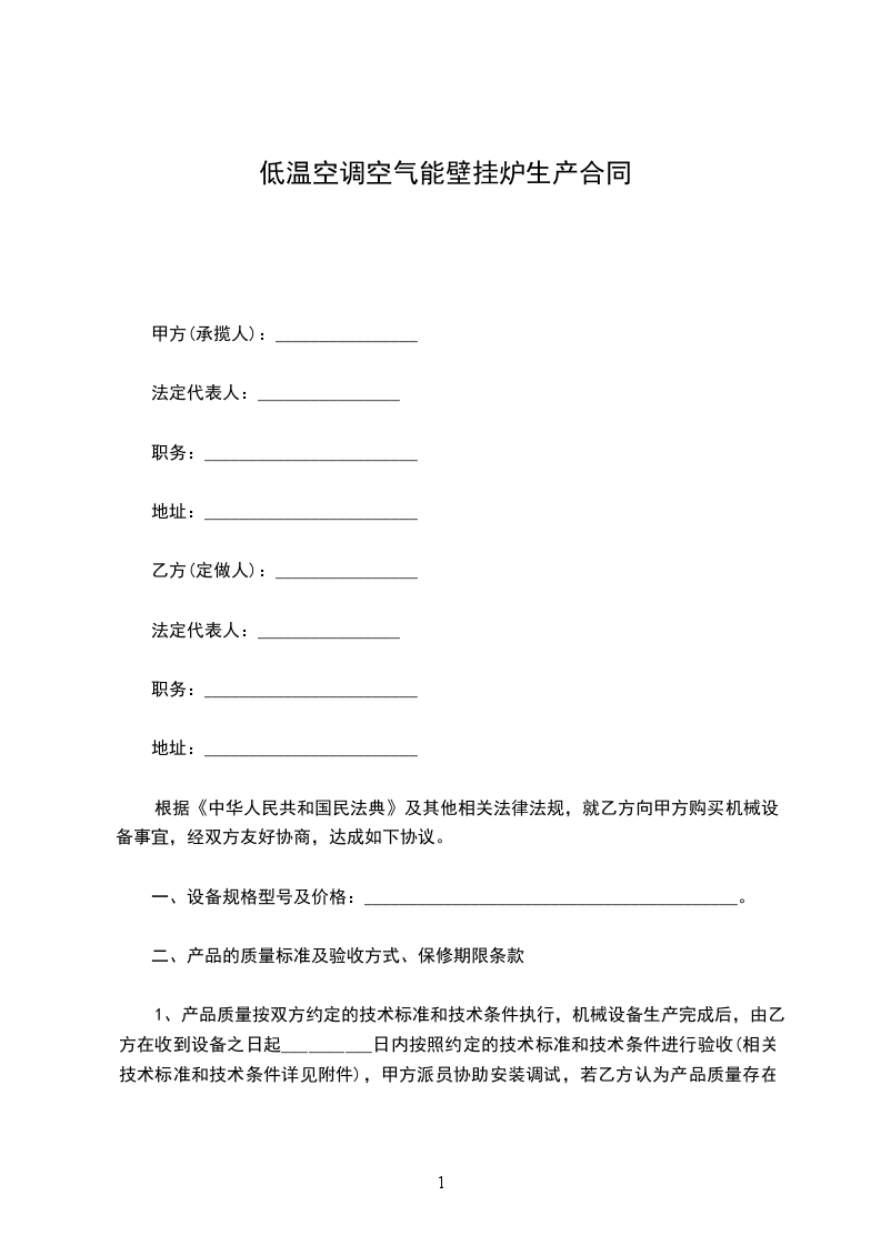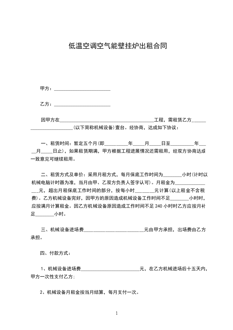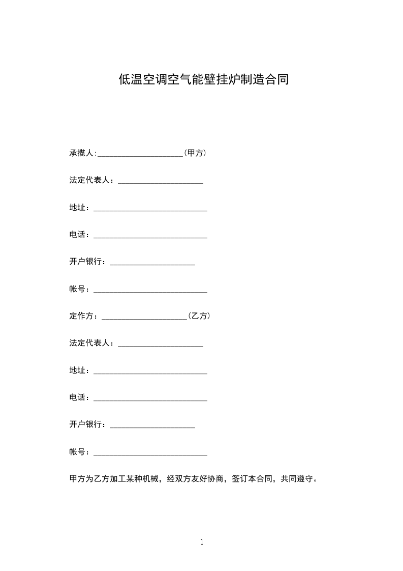 低温空调空气能壁挂炉维修合同