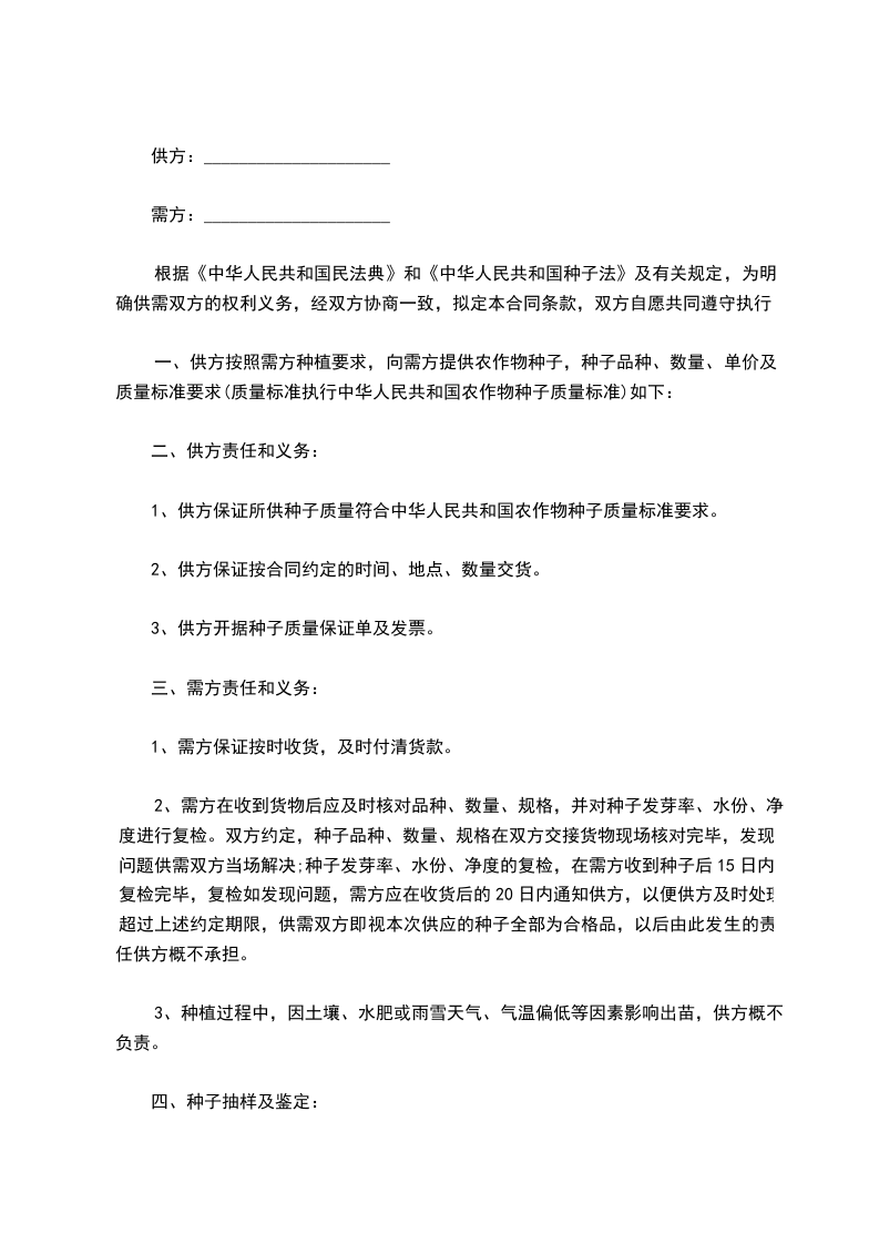 一、供货的品种名称:_____________________________________。