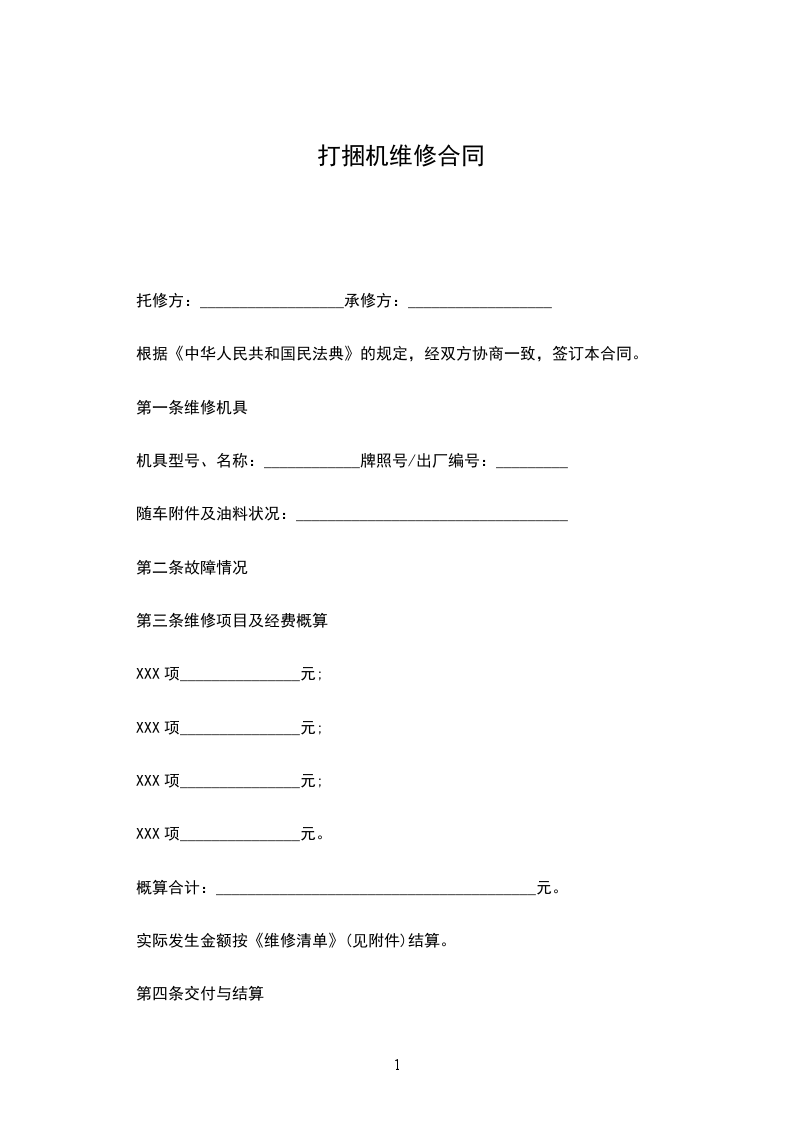 依据《中华人民共和国民法典》及相关法律规定,甲乙双方经友好协商,就_____________________维护保养事宜达成一致,同意签订本合同按双方的约定履行。