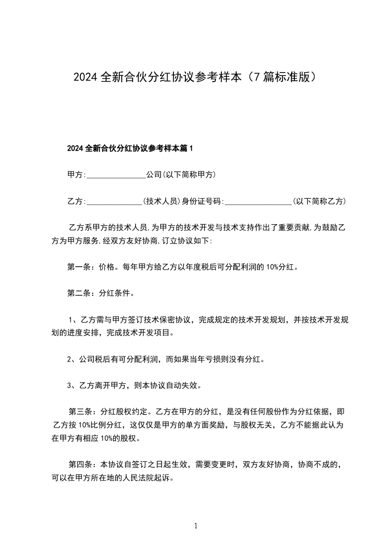 1.2分红:____________有限公司年终按照公司章程规定的可分配利润;